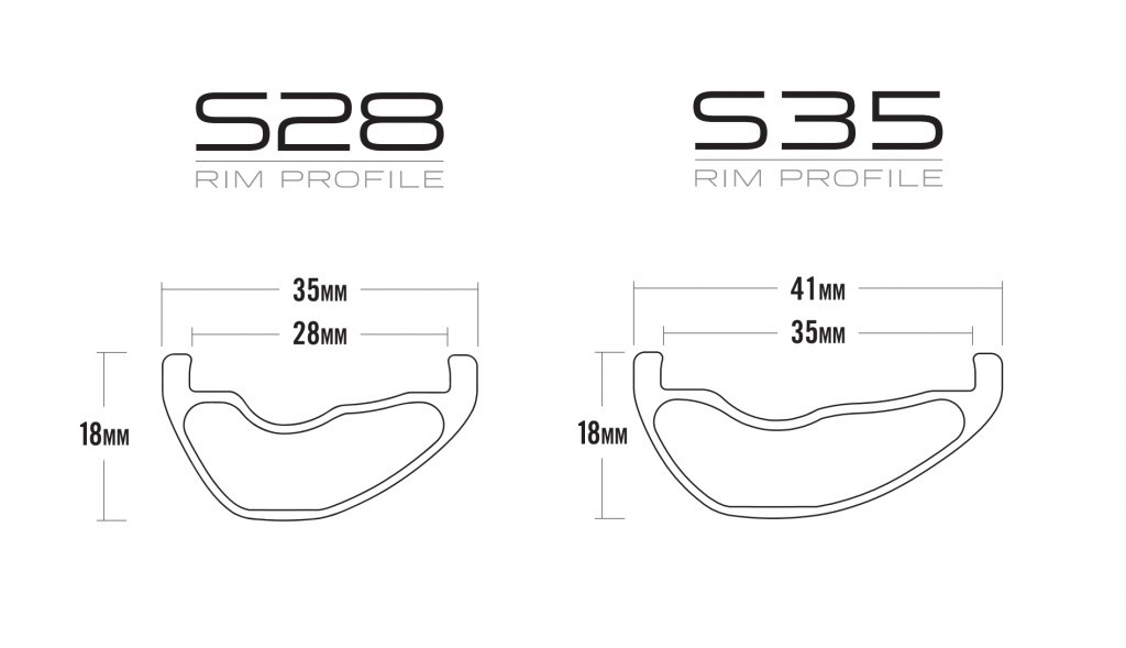 Our previous wheels used the external width measurement to identify them. To simplify things, we’re now using the internal rim width to differentiate between models. The S28 has a 28mm (technically 28.6mm) internal rim width, while the S35 has a 35mm internal rim width.