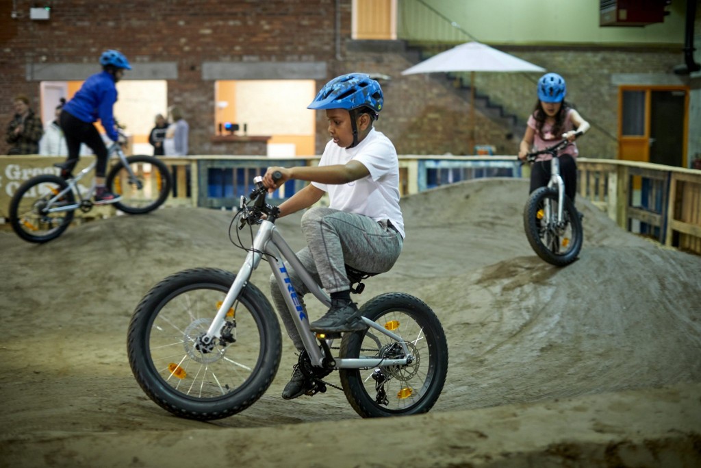 Trek Manchester Piccadilly store has supplied a fleet of Trek Roscoes mountain bikes that will be available for hire at Dirt Factory. Trek has also donated 36 Bontrager bike helmets to support school and community bike sessions at the Dirt Factory indoor bike park.