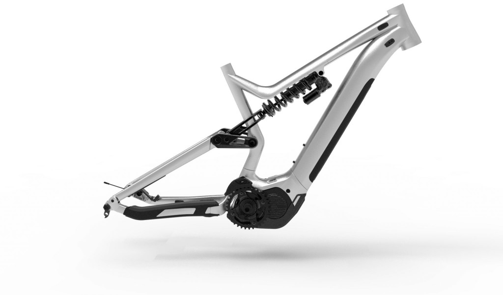 Because of the battery’s low position on/in the down tube, we use a long shock with a large stroke to vary the progressiveness of our suspension system.