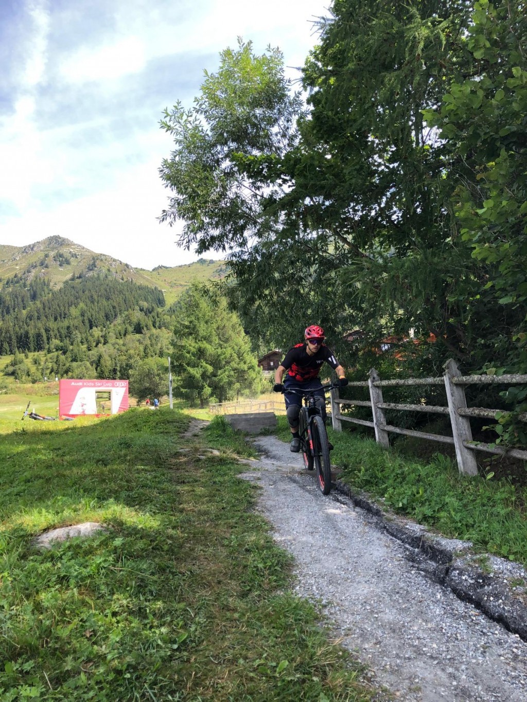 After lunch it was time to see the end of the E- tour du mont blanc, which had been a gruelling race with plenty of mechanicals which had meant the finish time was later than expected. In the end the final winners were Florian Golay (CH), Verbier local and VTTAE LAPIERRE team member who won the race alongside his teammate Olivier Grossrieder (CH) with a time of 13 hours, 19 minutes and 24 seconds. This race had not been as easy as people think with it being an ebike race. Far from it! The figures speak for themselves with 300km (260km of single track) long, 3 countries crossed, 12 000m of climbing, and 16 000m descent. With plenty of mechanicals to throw in the mix, this had been a truly epic race and one that us mortals would not have finished.