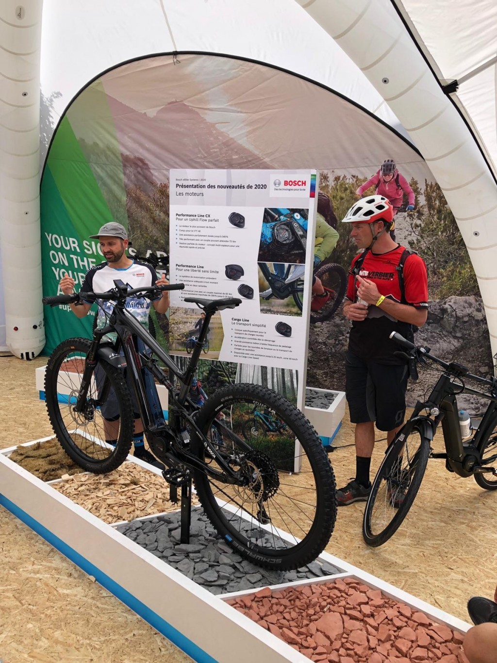 Once we had finished seeing the end of the race we had a quick meeting with the Bosch guys to show us their new Performance line CX motor, which is an impressive 48% smaller than the previous model and uses the new E-mtb mode which can change between tour and turbo mode depending on the pressure you put in. This made the uphill battles a breeze and the Bosch guys had us riding up some seriously steep tracks to really show what the motor could do.