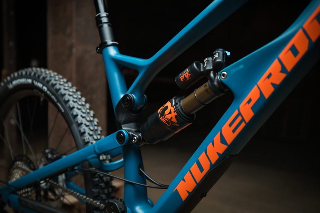 This paired with reworked frame geometry (a slacker head and steeper seat tube angle), creates a true “monster truck” of a bike, ultimately fast in the rough, but crucially balanced to be predictable and confidence inspiring under heavy braking and cornering in all conditions.