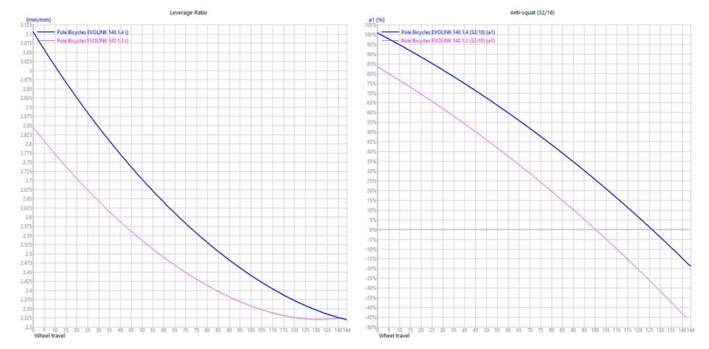 The biggest change that all of these updates bring to the ride feel of the new Evolink is more progression in the leverage ratio. In the mid stroke, the point in which a rider spends most time riding, is now set at an average leverage ratio of 2.67 compared with 2.52 of the previous Evolink 140 model. That equates to a 9% more progressive leverage ratio and in turn 18% more Anti-Squat.