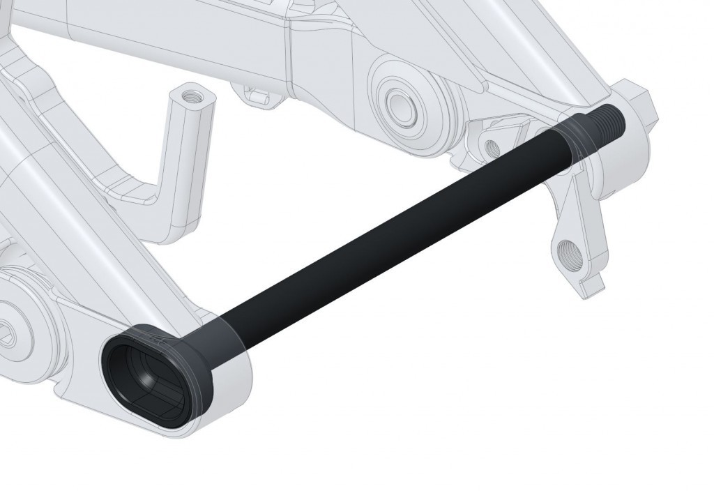 The new rear wheel axle system is designed to create a rigid connection between the two dropouts. The axle’s shape locks the left and right seatstays into place, resisting rotation and bending. This adds stiffness to the system, stops the axle from undoing while riding and reduces the number of individual parts to keep the system silent.