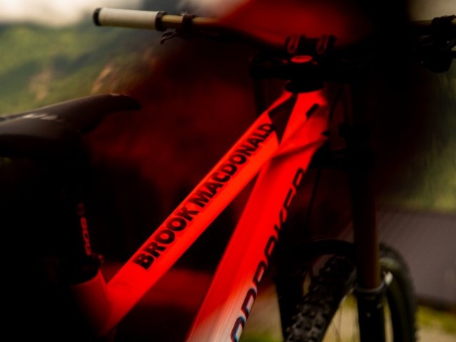 For the 2021 UCI World Downhill Championships, New Zealand racer Brook MacDonald, Great Britain’s Laurie Greenland and Italian Eleonora Farina will all be competing on custom painted Summum Carbon RR bikes featuring a unique, 3D anaglyphic design which when viewed through 3D glasses will display altered designs and ‘flip’ between graphic features. Racing and competing at the highest level of mountain biking are part of Mondraker’s DNA and the main drive behind the companies continued development process. To celebrate this passion for racing and drive to create the highest performing products, hours of custom painting, cutting and hand masking have gone in to create individual, one-off designed versions of the latest flagship Summum Carbon RR frames for each team member so they are ready to take on the World Championship DH course at Val di Sole in style.