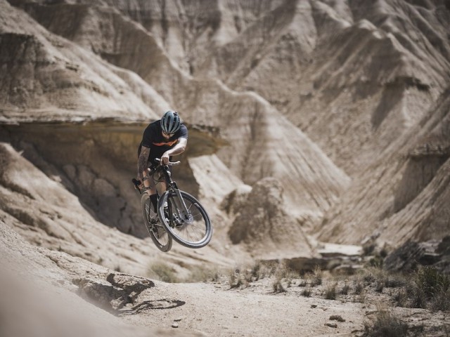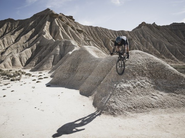 The Bardenas Reales Desert is just under an hour from David’s house, it really is amazing, it is a strong contrast because it is only 70 km from the Pyrenees, it is a place that he knows well. “I have ridden there many times and I am aware that it is a very special area and not always easy”.