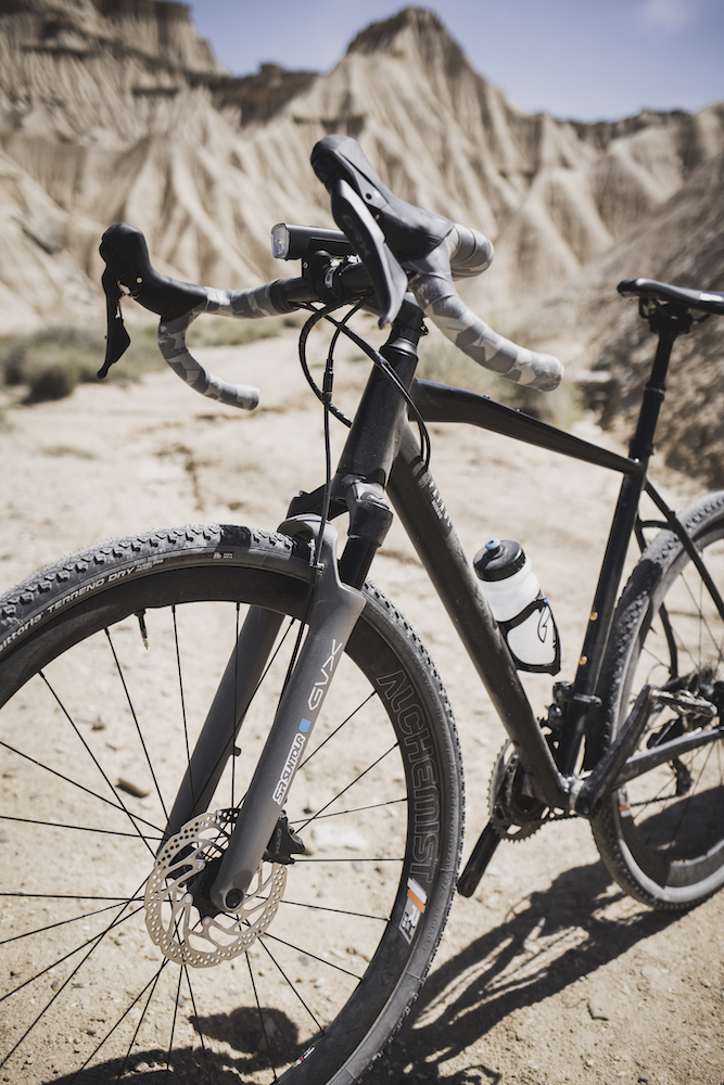 The route that Cachon prepared for this adventure was under 100 km but he assures you that it is very hard considering that he wanted it to pass through some of the most difficult to access places in the Bardenas. Very technical places that do not allow error. A technical riding that allowed him to put the new Gravel fork to the test, but long and intense enough to see if the fork was capable of mitigating the joint and positional pain that he would suffer in the following days if he did it with a rigid Gravel fork.