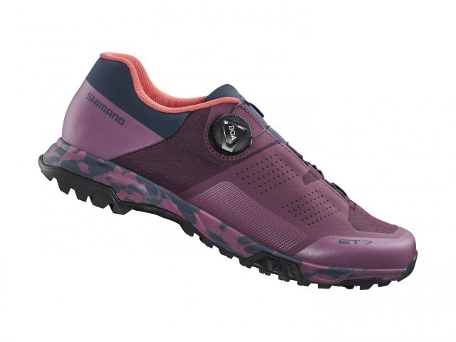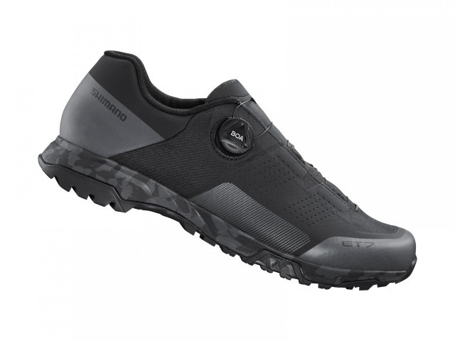 Considering the different riding style of e-bike riders, the ET7 features a stiff ‘power transfer blade’ in the midsole to protect the Achilles tendon from shoe flex and to transfer more power to the pedal. Like the GR9, the ET7 sole also features traction points on the toe and heel area for hiking, plus a 360 degree traction sole pattern for great pedal connection.