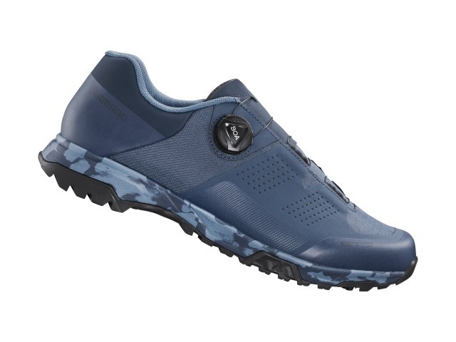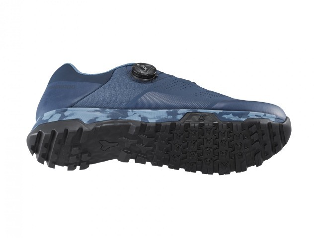 The AM, or All-Mountain series, is Shimano’s SPD shoe for Downhill and Enduro riding for riders who prefer a stronger connection to the pedals. The improved AM903 version comes with a dust-protection tongue to cover the handy quick-lace system, plus a wider instep strap for more secure accelerations, and a new last to cover a wider range of foot shapes. The sole’s contact area is optimized for Shimano’s PD-M821 pedal, with an extended pedal channel for stability when not clicked in, plus a toe and heel pattern for traction.
