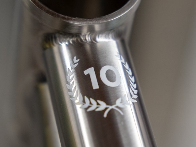 Stanton didn’t want to let the year slip by without marking the occasion so they created something a bit special – the Slackline Ti 10th Anniversary Special. A stunning frame featuring uniquely-crafted, aerospace-grade, triple-butted Titanium tubing and made that little bit more special with a unique 10th Anniversary decal scheme. Featuring an anniversary decal on the top tube and heritage wrap in white ceramic Cerakote finish (normally a £100 option).