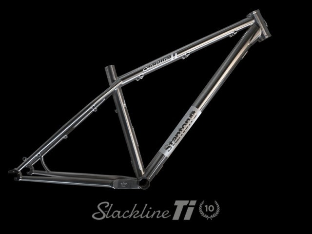 Even better they’re handing out the pressies with 10% off the normal price of a Ti frame until the end of this anniversary year. You’ll see the 10th Anniversary frame as an option on the ‘Build’ dropdown menu on the product page. Not only that but a specially created Slackline Ti Blasted Grey t-shirt will be included with every order!