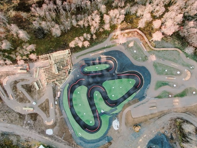 The total area of the small – Kids Pump Track – is ~1260 m2, including a fun children’s loop (37 m long) for the young riders. The main loop is 117 m long. It’s fast and has quite big berms, which are perfect for improving turn technique.