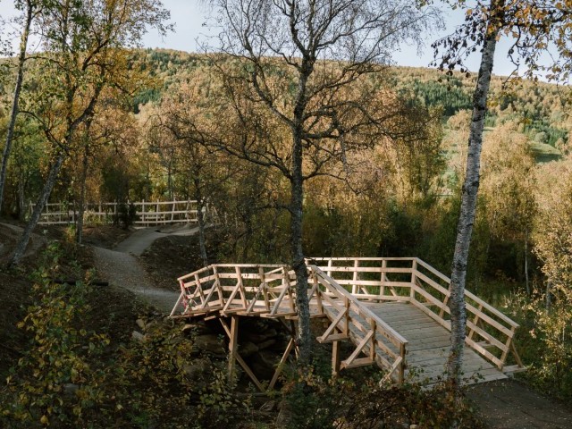 The final woodwork is still in process and being continued by carpenters who arrived at the end of September to create various wooden elements in several areas around the territory – Freestyle Bike Park, Skills Bike Park, and others. Although it has been snowing a few times already, the carpenters have managed to complete the construction of an impressive 300 m2 terrace. It has a wonderful view of the Bergselva River and is a perfect place to relax.