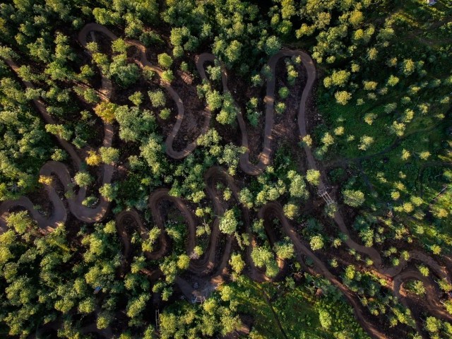 The second uphill trail is ~300 m long and winds through the epicenter of downhill tracks. During the uphill trip, it is possible to see almost all the downhill trails, which allows you to see the details of the tracks, learn from others, as well as cheer up friends from the side.