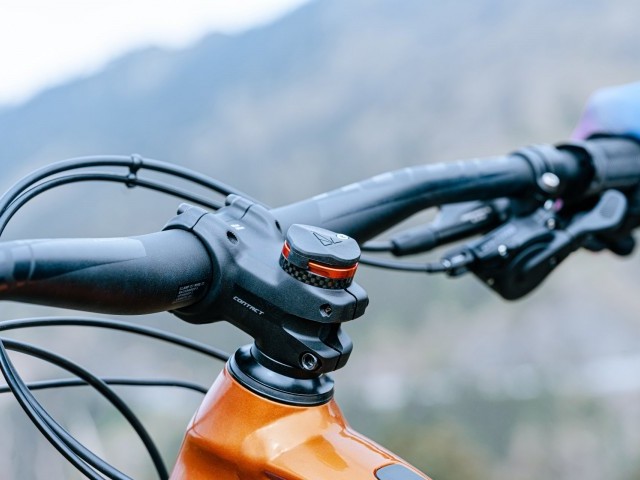Riders exert finger pressure on the top to unlock it. Turning the top at the same time allows the unit to pop up from within the steerer and then be easily removed.