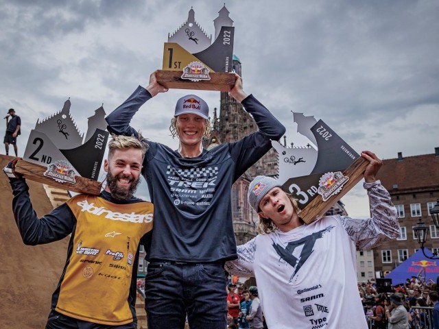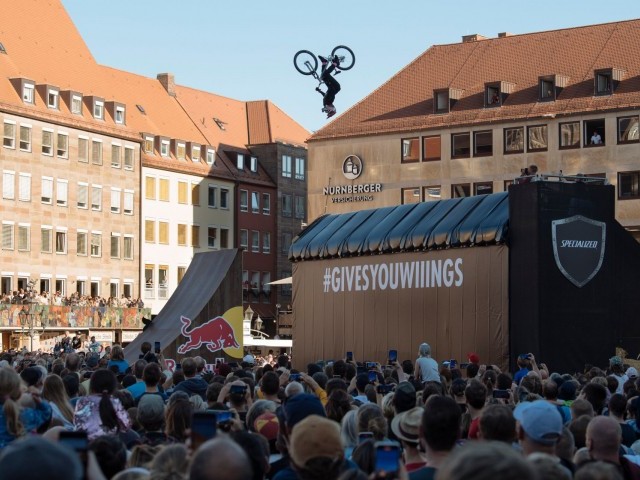 – The world’s biggest urban slopestyle contest took over the historic centre of Nuremberg on Saturday, where 120,000 fans packed in to watch the action on the huge course laid out over five distinct ‘districts’ totalling about 700 meters and including some innovative features to push the progression in mountain bike slopestyle.