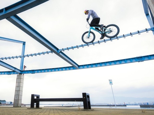 One of the hardest tricks for the Japanese was the Step up 180. This trick needed a lot of speed and skills to tap the rear tire. After the first tries, Tomomi thought that his bike was not going to hold the impact but the Canyon Spectral made it through.