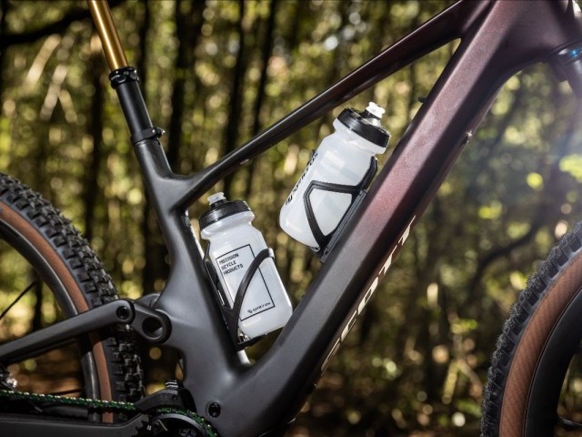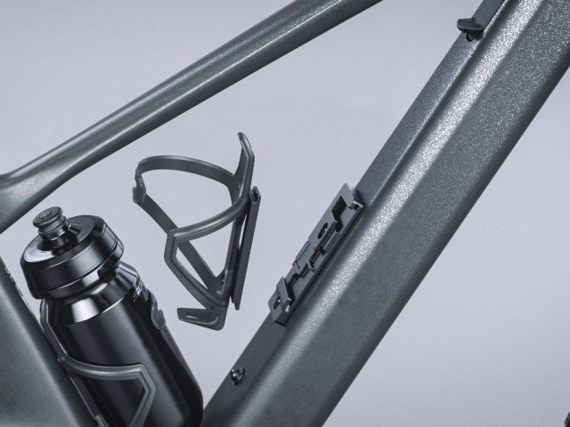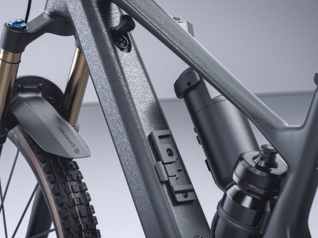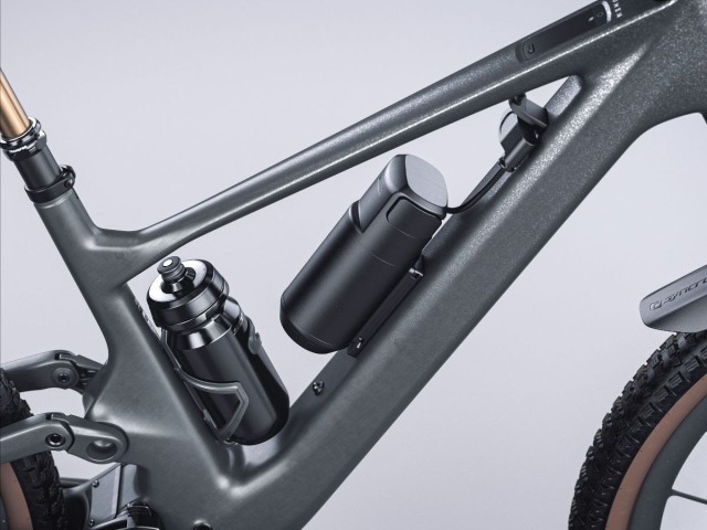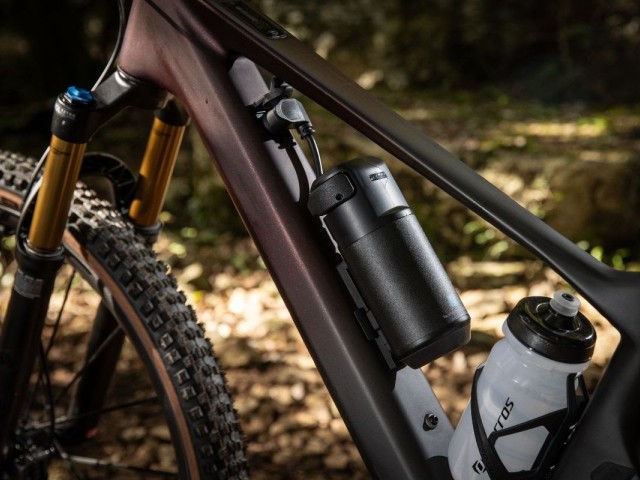 Unlike most full suspension E-Bikes, on the Lumen there is no need to choose between the range extender or a water bottle – between longer rides and staying hydrated. Thanks to the integrated shock there is space for both an external battery and water. An optional sliding mount system also allows an easy switch between the front water bottle and the range extender, allowing either to be easily transported when out on longer rides.