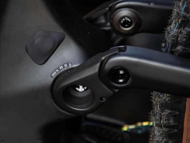 Setting sag is also easy, as you can see what sag you’re running via an indicator on one of the pivots. Want to know if you’re using full suspension travel? Have a look through a port in the seat tube where you can see where your o-ring sits. You can easily move it back down to reset it.