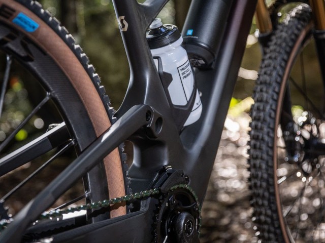 The Spark debuted a frame platform with an integrated shock and the Lumen follows the same principle. Why integrated you ask? Well for one, it looks fantastic. But if we take a deeper look, this approach allows us to refine suspension characteristics without sacrificing weight. And when developing the world’s lightest e-MTB, every gram matters. For the optimal performance of a suspension shock, power transfer must be the most direct possible. What Scott wanted to avoid are any inefficient directional movements, in other words, lateral movements (sideways to the direction of travel) as the shock goes through its compression. Having an integrated shock allows us to improve this in several ways. Firstly, the frame construction around the shock and with the trunnion mount can be designed to be much more rigid, reducing movement and fostering more efficient power transfer. Scott can also add much larger bearings to the seat tube pivot, further reinforcing this area and reducing any unnecessary motion. While these may seem like minor improvements individually, the sum of their parts results in more efficient shock performance. Additionally, the shock is fully protected from any foreign elements. Rainy wintry ride? No problem, your shock will continue to perform at its best regardless.