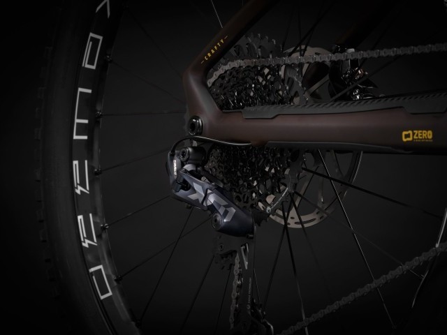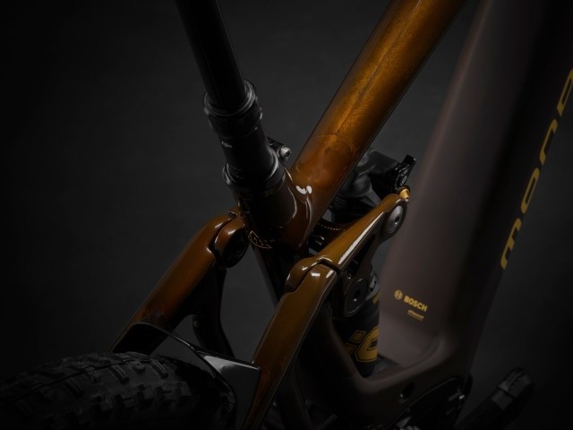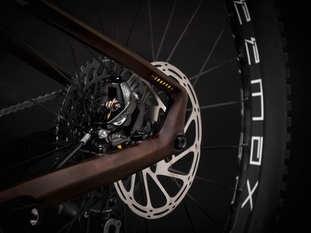 The exclusivity of the Crafty Carbon XR LTD is built on the Crafty Carbon XR with which it shares most of its specs, with a stand-out Öhlins fork and shock doing the duty of providing the 150mm rear wheel travel, complemented by 170mm up front. Of course, the finish of the frame with the Transparent Amber color, is unique in the Crafty Carbon 2023 range and reveals the layers of carbon that form a part of the structure of the frame tubes.