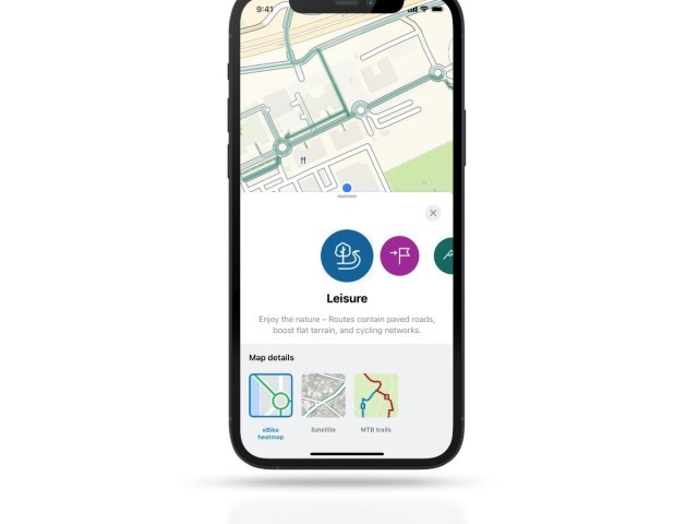 In addition to the route profiles, Bosch offers map detail variants ‘Satellite’, ‘MTB Trails’ and the new ‘eBike Heatmap’. The latter shows which routes eBikers regularly use. The ‘MTB Trails’ map also allows app users to see which mountain bike trails run nearby, and are colour-coded according to their level of difficulty. The ‘Satellite’ map provides a better overview and more precise information about the rider’s surroundings. All three map variants can be easily selected in all route profiles.