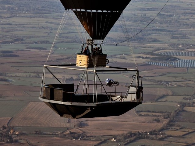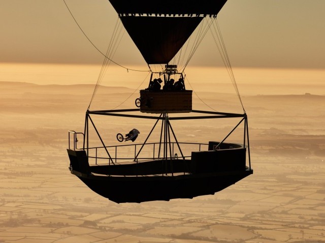 Don’t Look Down sees Kyle wearing a parachute and riding his bike in a Formula One-engineered BMX bowl suspended 2,000 feet in the air under a colossal hot air balloon.