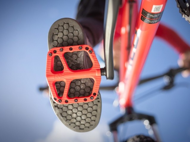 The new Small Comp Pedal has all the features of OneUp’s Composite Pedal in a shape that works better for smaller feet. OneUp recommends the small pedal for riders with a shoe size up to US Women’s 8 or US Men’s 6.5. The platform is 97.5mm x 92mm compared to the regular Composite Pedal which is 115mm x 105mm.
