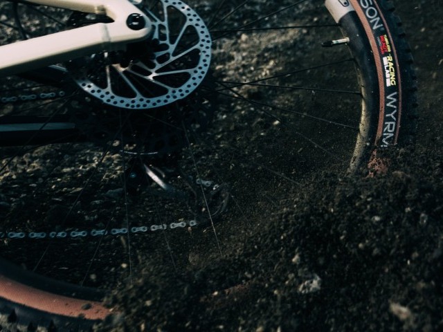 The Wyrm’s large 2.4” volume enables the tyre to be run at lower pressures, while its lower height and low-profile design ensure excellent efficiency, even on dry terrain requiring quick acceleration. A relatively round profile offers a forgiving platform for excellent support on rugged terrain, corners and off-camber sections.
