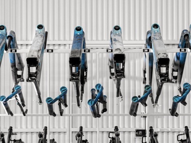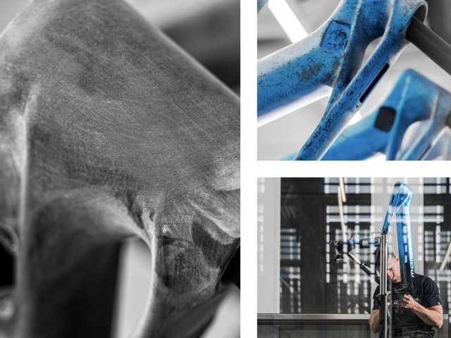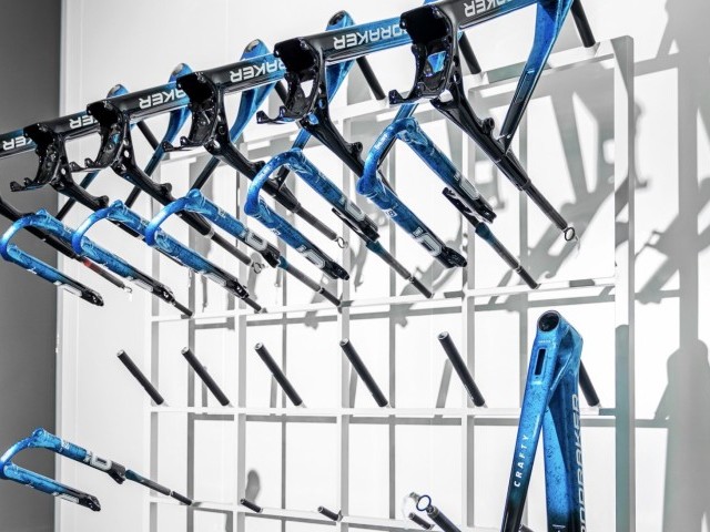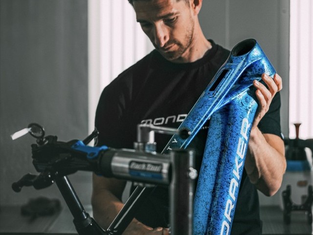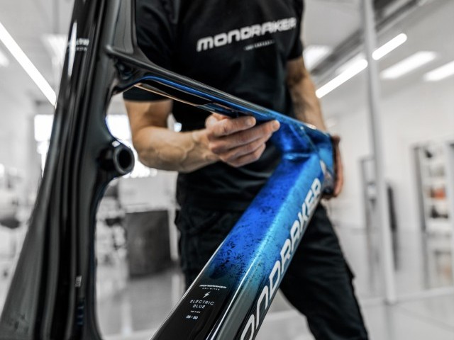 One by one, the fifty Crafty Carbon Unlimited Electric Blue Mondrakers are hand painted at the HQ. Fifteen hours of work goes into each and every one of them. Fifteen hours of preparing and hand painting a spectacular marbled paint job which is unique to each bike. No two bikes are the same. Each has its own personality and is one of a kind to never be repeated.