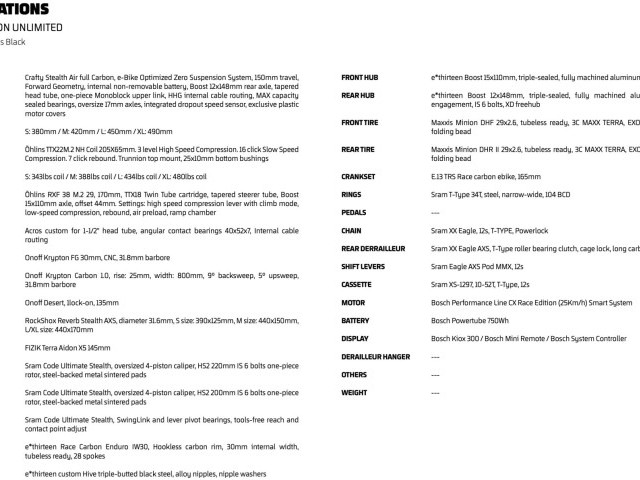 To set the Unlimited Electric Blue even further apart from the XR LTD released a few months ago, it comes specced with an Öhlins TTX22 M.2 coil shock, SRAM’s new XX-T-Type transmission and E*Thirteen’s Race Carbon Enduro IW30 wheelset.