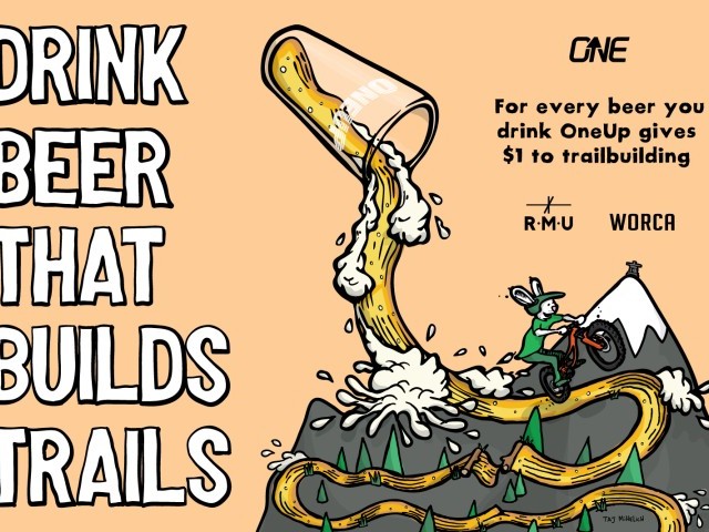 OneUp Components is donating $1 from every beer sold at RMU Whistler to trail building. OneUp has partnered with RMU to raise funds for the Whistler Off Road Cycling Association (WORCA). WORCA builds, maintains and advocates for the trails in Whistler since 1989.