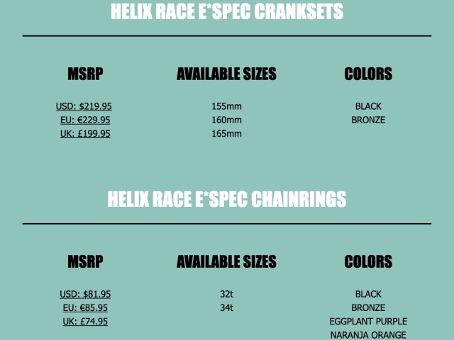 e*thirteen is proud to announce the launch of the rugged and handsome Helix Race e*spec cranks and chainrings designed to fit Bosch CX and SX motors.
