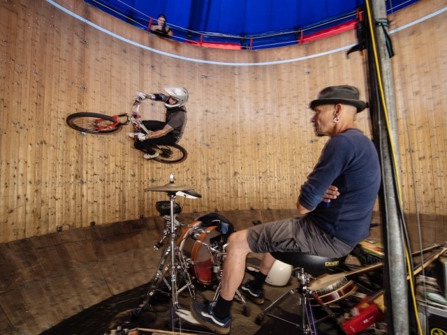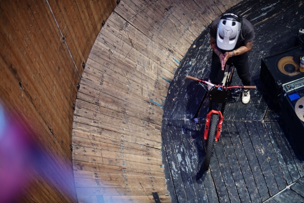 Mondraker’s riders and ambassadors are just wired differently, and Richard Gasperotti isn’t the exception. It looks like riding down 6 active volcanoes earlier this year just wasn’t enough to keep him happy for long and now he’s turned his hand to the raddest, and maddest, of circus tricks (together with his CRAFTY CARBON R). The world famous “Wall of Death”, a kind of hall sized wooden barrel which motorbikes ride around the inside of, is what’s caught his attention this time around. Imagine trying to ride an endless wall ride two or more meters off the ground!