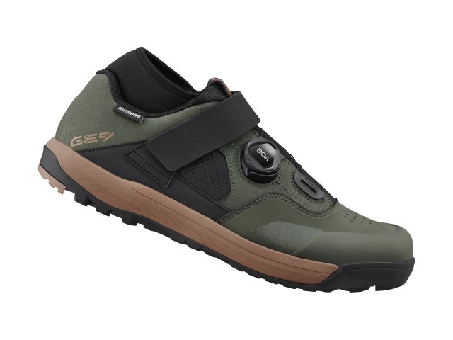 Shimano’s benchmark, high-end gravity shoe, the GE900 features a TORBAL 2.0 midsole that allows the heel section to move torsionally, maintaining full range of motion for improved comfort, fluidity, and on-bike control. A full-length EVA midsole reinforced with carbon reduces weight and enhances pedalling efficiency. Featuring a BOA® Fit System with shield and instep strap, the GE900 deliver quick and precise closure and superior foot hold for aggressive pedalling over rough terrain.