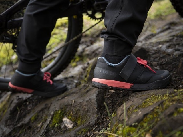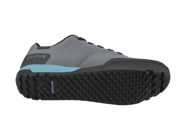 The new GF4 and GF4W are affordable trail-ready flat pedal shoes that now feature Shimano ULTREAD sole technology for exceptional grip. The shoe also delivers a more flexible sole for confidence-enhancing pedal feel without pain or hot spots. New half-length EVA midsole increases cushioning and comfort during hike-a-bike sections, while durable and breathable fabric upper with asymmetrically raised padded ankle collar helps keep you cool and protects against rock strikes and other trail impacts. The GF4 is offered in an expansive size range, new for the gravity lineup, ranging from size 33 up to size 48 to fit more rider foot shapes and sizes.