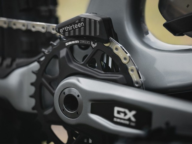 Commanding the cockpit is a Renthal Fatbar and Integra stem combo, with SRAM Code RSC brakes , ODI lock on grips and SDG I-Fly saddle. Protecting the SRAM XO1 7 speed downhill specific groupset and keeping shifting sweet is an E*Thirteen TRS chain device with bashguard. This time Crankbrothers Synthesis wheels are rocking an aluminum material too, suited and booted with MAXXIS Assegai ’s in the stickiest MaxxGrip compound front and rear.