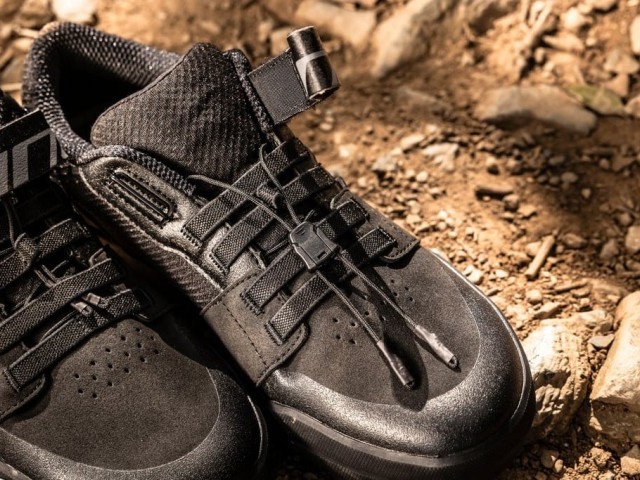 The clipless-pedal shoes are the Materia and Materia Pro, with the latter standing out for its unique fastening system, featuring a tear-off securing strap. Materia Pro presents the innovative PER-FIT System, which stands for Precision Elasticated Retaining System: A series of four elasticated bands positioned on the instep along with a quick-slip lacing system allows fast and accurate fit adjustment, and a top strap can be used alter the width according to individual foot shape. Due to this design, the PER-FIT System applies uniform pressure and ensures a highly accurate fit around the instep.