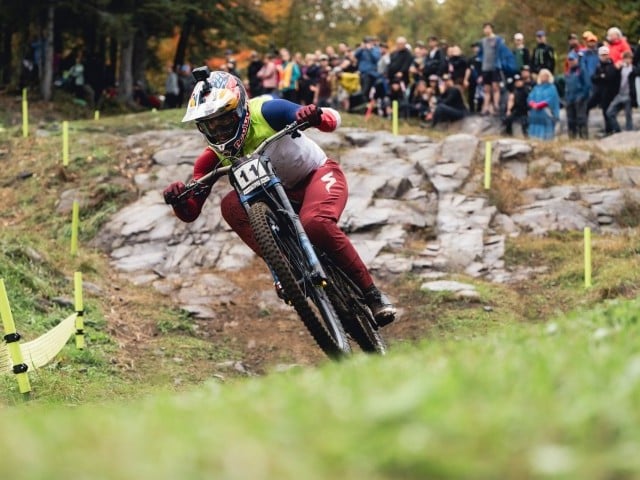 Third again for Bruni was enough to seal the UCI Mountain Bike World Cup downhill overall title for the third time after wins in 2019 and 2021, beating Goldstone into second place 1,698 points to 1,616. The French rider is also a five-time winner of the World Championships in the Elite class.