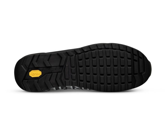 The flat-pedal version features a low-profile, tapered tread pattern on the midsole that allows for an immediate, optimal connection with the pedal pins.