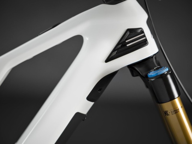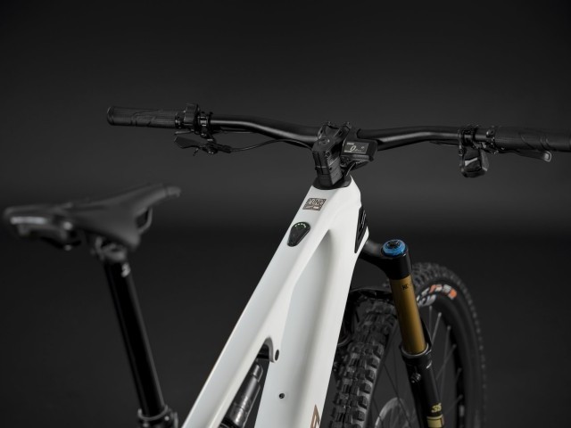 The eONE-SIXTY CF is an all-carbon, lightweight, full-power, high-performance eMTB. Equipped with 170 mm front and 174 mm rear travel (27.5″ wheel), a fully integrated 600 Wh battery that can be extended to 960 Wh, it offers maximum handling performance and manoeuvrability when every second counts thanks to its low overall weight, full level support and extremely low battery position in the downtube.