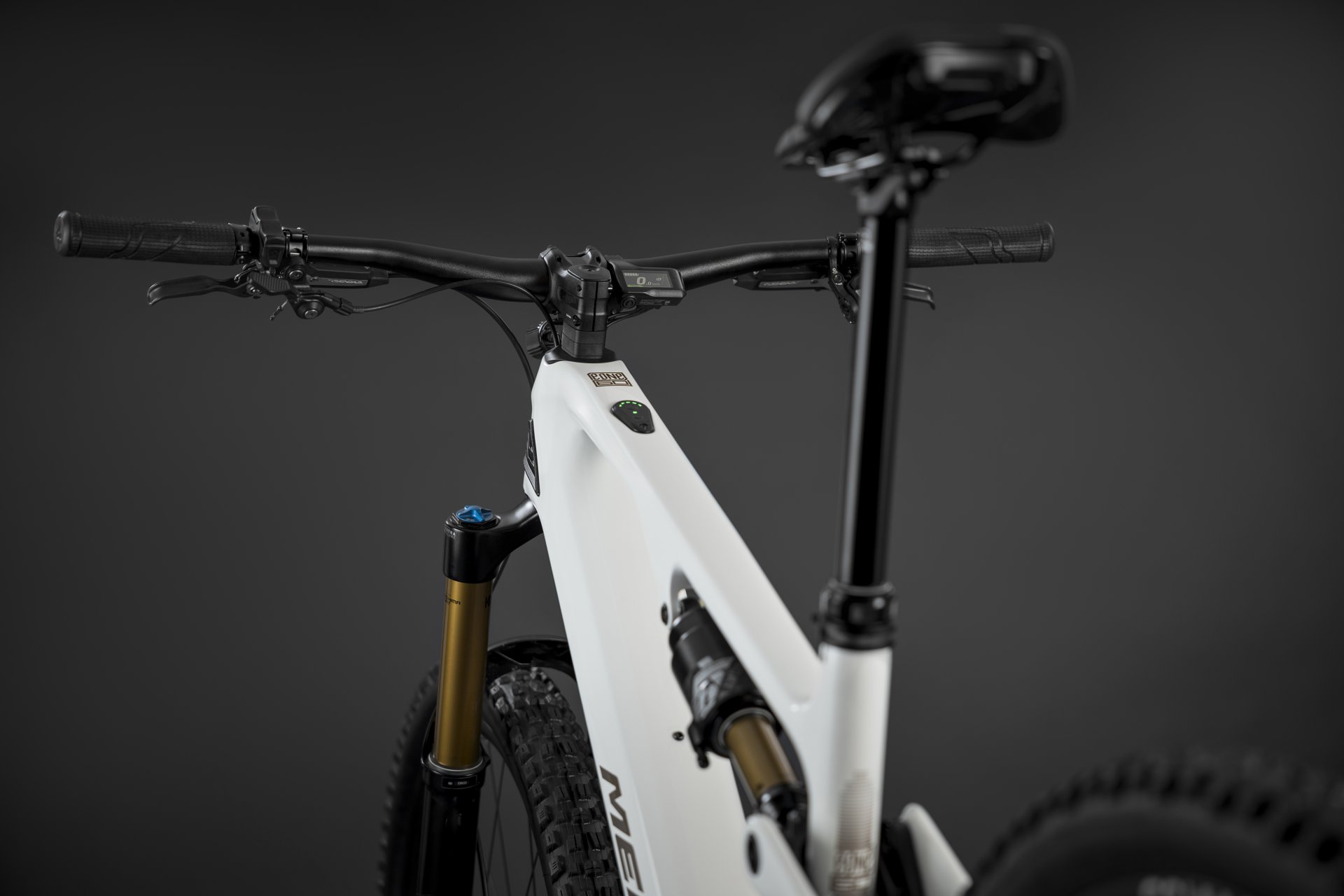The eONE-SIXTY CF is an all-carbon, lightweight, full-power, high-performance eMTB. Equipped with 170 mm front and 174 mm rear travel (27.5″ wheel), a fully integrated 600 Wh battery that can be extended to 960 Wh, it offers maximum handling performance and manoeuvrability when every second counts thanks to its low overall weight, full level support and extremely low battery position in the downtube.