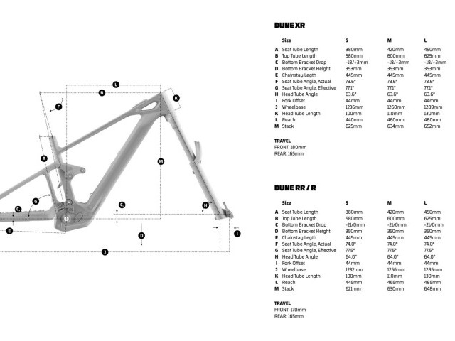 • 170mm front, 165mm rear wheel travel (180mm front on the XR model)