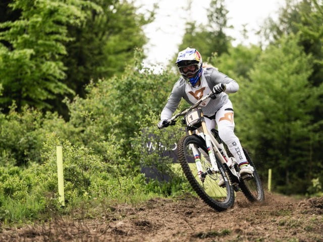 In the women’s elite downhill race, New Zealand’s Blewitt put down a strong run to finish in fourth 2.425s back from the winner with Briton Tahnée Seagrave fifth and Austrian Vali Höll sixth.