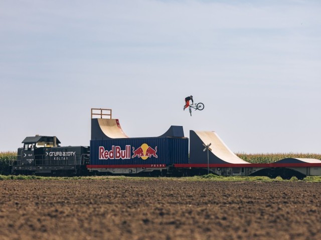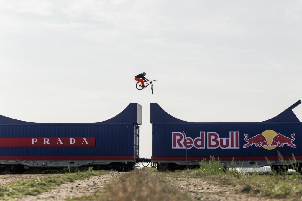 The Red Bull Bike Express course was an engineering marvel, built on 10 train cars provided by Grupa Azoty Koltar. It featured 8 jumps, a roller, and a stair drop, all navigated on Godziek’s custom Specialized bike equipped with Continental tires. Filming took place in Upper Silesia with support from PKP Polish State Railways S.A., marking the first Polish sports project produced in collaboration with Prada Linea Rossa: the champion was equipped with clothes that allowed freedom of movement, bringing together comfort and high-performance function, in an ongoing partnership with Red Bull that supports demanding challenges and the athletes who dare to take them on.