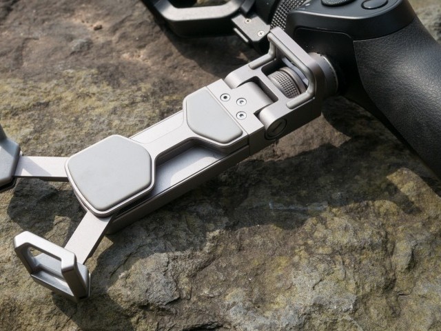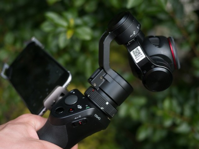 The gimbals movements can be controlled from a small joystick on the handle grip, which also features a record button and an orientation lock. The free DJI mobile app allows all the gimbal and camera settings to be tailored to suit the user. The app also makes your phone a portable HD monitor for the camera, which can be used on the inbuilt adjustable phone bracket or remotely from the Osmo so it can be controlled remotely, allowing you to assess the shot away from the unit, as it simply connects via WiFi. The touch screen controls on your phone really make all the menus incredibly intuitive and fast to navigate, meaning you can easily adjust and correct as you go.