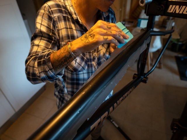 Of course it starts with the application and I will be honest, I took several days of mental preparation in order to gather courage and get it done. Turns out it’s not as hard as it seems, and as with everything proper preparation makes all the difference. Create a good workspace setup to start with, where you can lay out your tools in a logical order. Take your time. That's the biggest tip. Don’t think you can ‘slap it on’ the morning before heading out for a ride or when you come back home after a long day of work. Take the day off, put up a no disturbing sign and some chill music and you’ll be good.
