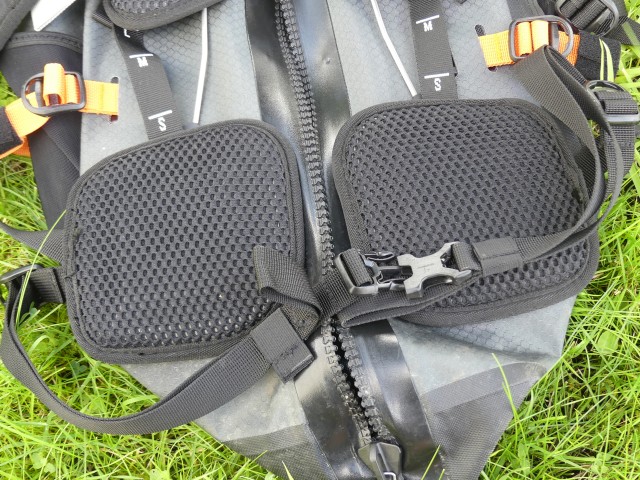Simply put, the Atrack BP is a 25 litre fully waterproof pack, which is accessed by a full-length zip between the shoulder straps. There are numerous external straps to keep the contents tight against your back and attach any other kit to the outside. Two side pockets give quick access and inside the main compartment are two fold-out fabric organisers which take small kit and ease organisation. In addition to this inside, there is a key clip, compression strap and a bung which can be removed to allow a hydration hose out through the top whilst maintaining a watertight seal.