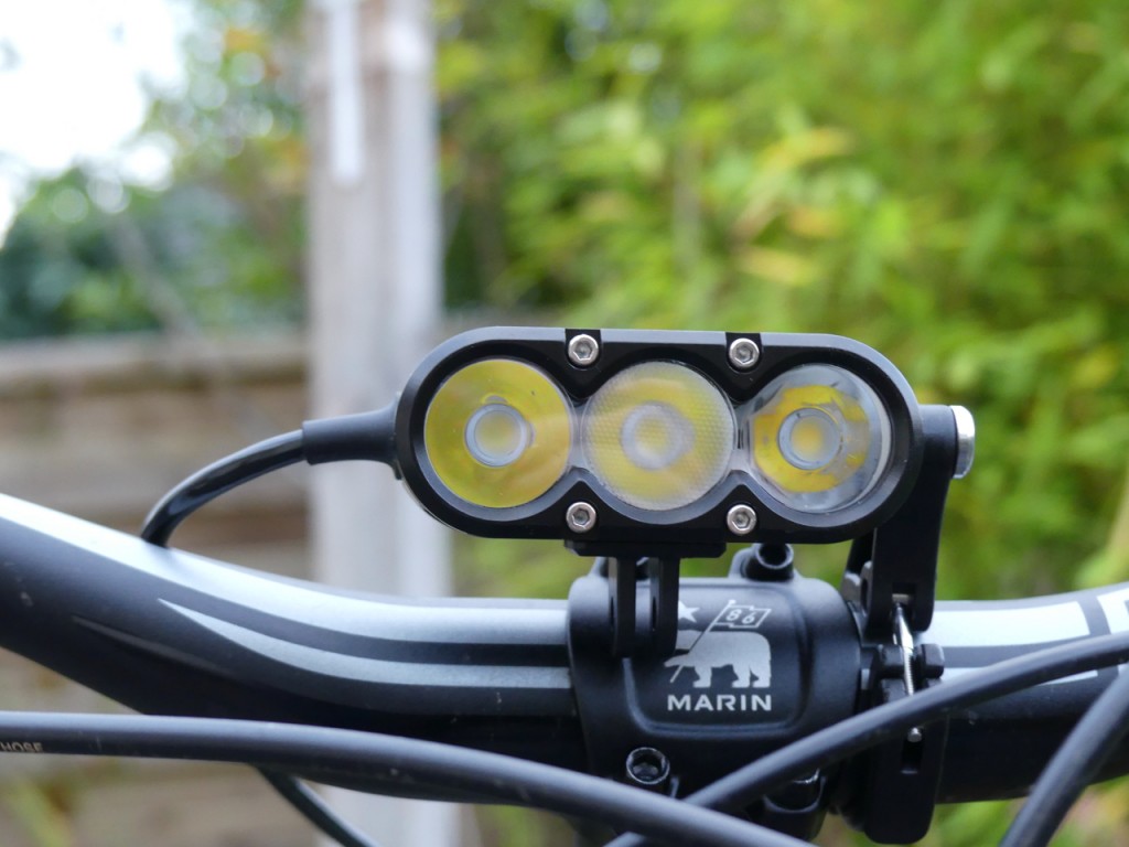 Despite the power on offer from the 3400 lumens, I still wanted a headlight on for night riding and the X2 was a fine match. Sharp corners, or putting light precisely where it's needed can only be achieved with a helmet mount. What the XSV does do is create such a clear view of the trail ahead that the helmet light simply picks up the most important bits of the trail and sharpens up the bits of trail that need the most attention. As a pair, they worked exceptionally well together.