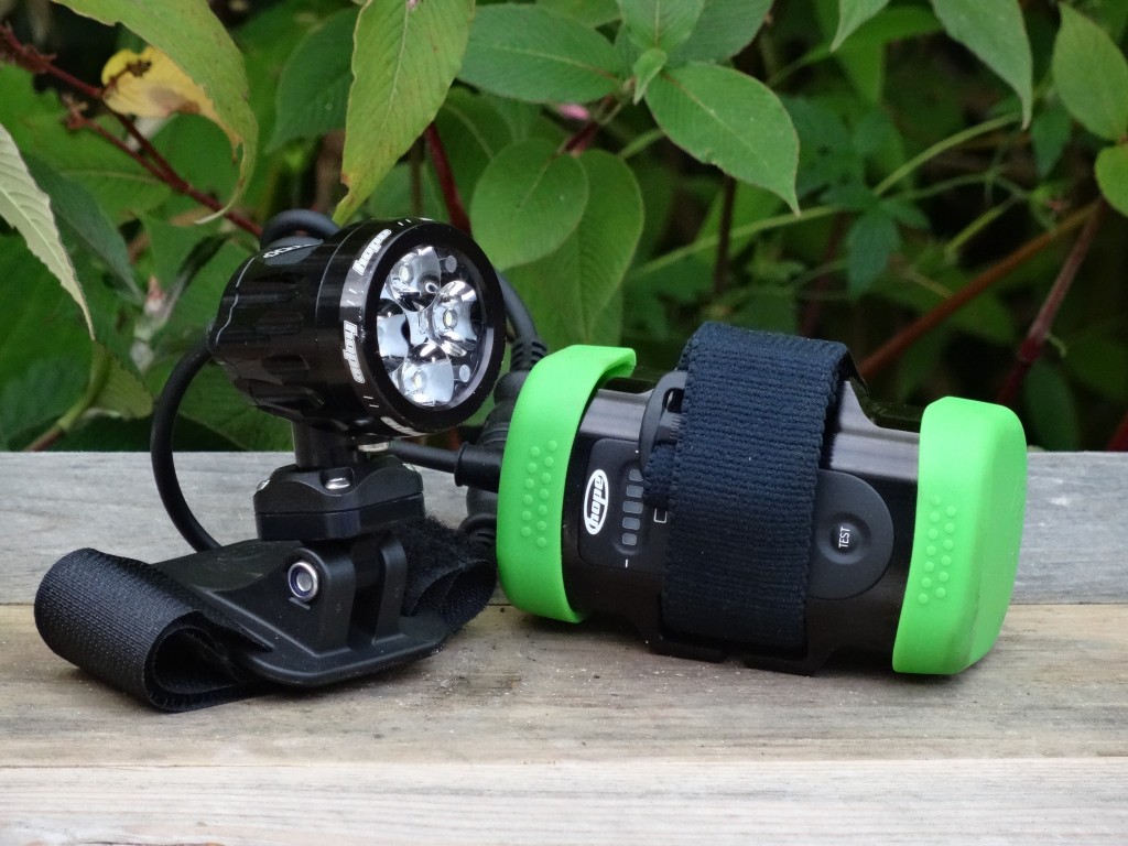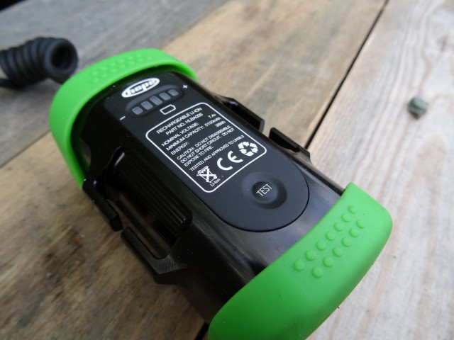 Cable options allow for the external battery pack to be frame mounted, or carried in a pack if used on your helmet. There is also a head torch strap for use off the bike for when/if you feel the need to go for a run at night. The battery has a five bar indicator and a test button to keep you up to date with burn time. 2.25 hours of run time on high should give plenty of time for an evening jaunt in the winter. A back-lit button with different colours allows for output level to be determined on the two power sequences, each with three different levels.